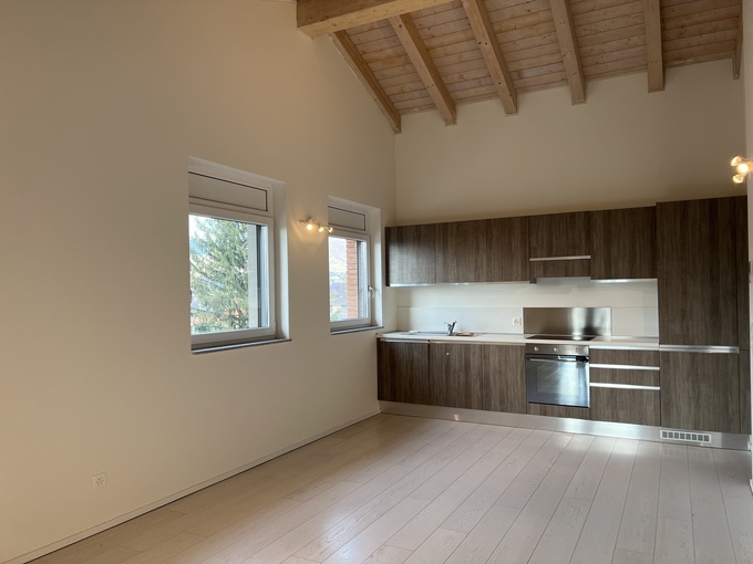 moderno elegante attico con tetto a vista di 3,5 locali con posto auto, lavanderia privata in casa